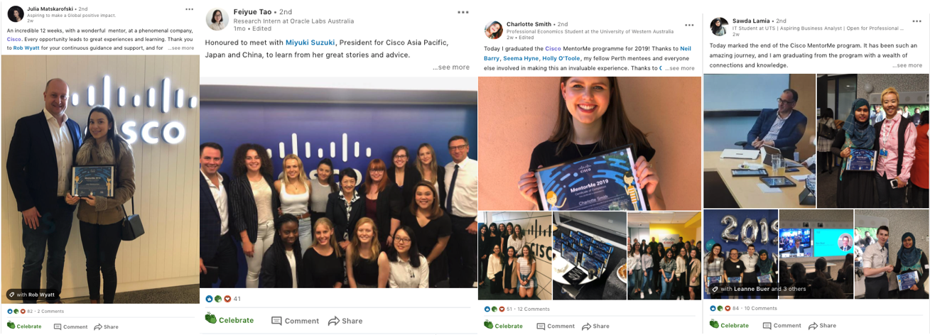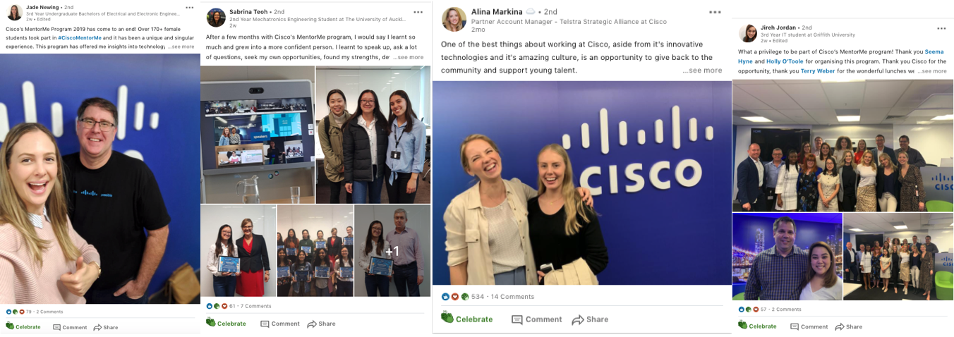 Earlier this month, over 170 female university students graduated from Cisco’s Mentor Me program, which provides 1:1 mentoring with a tertiary student and Cisco employee. The office sites across Australia and New Zealand where abuzz to celebrate the end of the program!