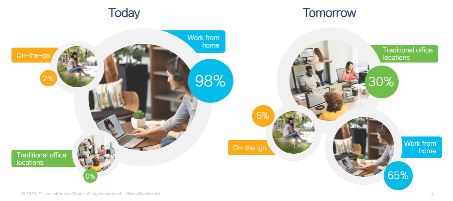 There is anticipation about what work, and the workplace of the future, will look like, with analysts estimating that up to 65 percent of staff will continue to work from home even after the pandemic ends. This view is aligned with the recent Fortune 500 CEO Survey where nearly 30 percent of respondents said that they don’t see 90 percent of their workforce returning to the office, ever.