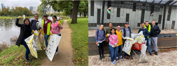 The team in Melbourne with local non-for-profit organisation, Reducing Our Footprint, spent the day out to clean up the Yarra River Park. Equipped with gloves and recycling bags, they collectively removed 14 bags of waste and even pulled a shopping trolly out of the river. The team focused on collecting the usually overlooked micro-fragments of waste – plastic wrappers, broken glass and cigarette butts were found in big quantities.