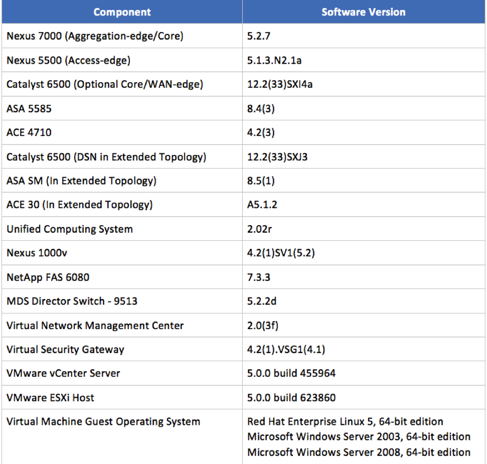 The specific HW & SW components that were used for validation of VMDC Release 3.0 are: