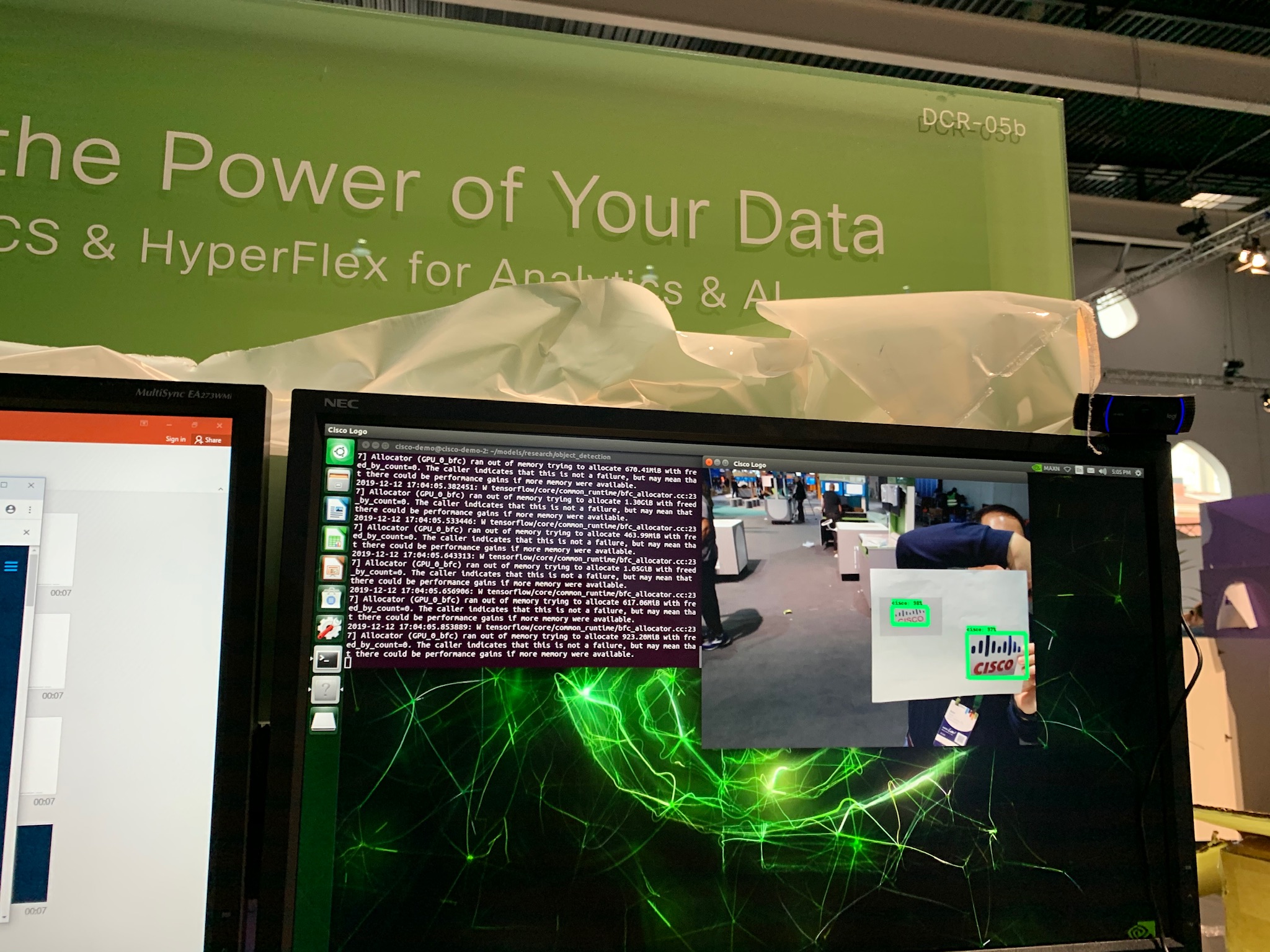 We want to thank Groupware Technology, an IT solutions provider, for helping Cisco to develop this demo. In fact, Groupware used data augmentation techniques, such as rotating the logo, changing colors, etc., to create a training data set of 54,000 images. This data set then went through 200,000 steps of training to create the model that was placed in the NVIDIA Jetson Nano. While the model recognized many Cisco logos, even those found on the Cisco Live backpack, there was just one Cisco logo that the model could not recognize. Of course, that Cisco logo will be added to our training set to improve the model.