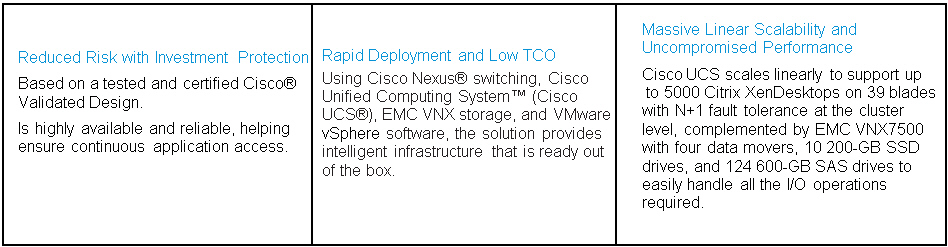 The highlight benefits of the joint validated design for deploying a scalable Citrix XenDesktop include the following: