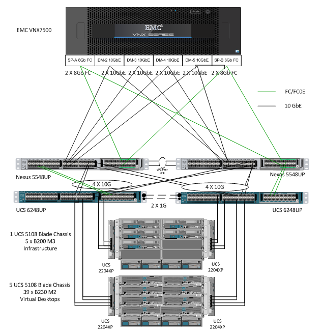 Cisco UCS together with Citrix technologies, EMC VNX storage, and VMware vSphere provide the key foundation for a high performance, highly available HVD environment: