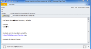 Captura del e-mail comprometido descubierto en España