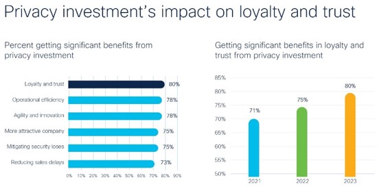 “Il 94% degli intervistati afferma che i clienti acquistano solo se i loro dati sono protetti in modo adeguato“, spiega Harvey Jang, vice president and chief privacy officer di Cisco. “I consumatori sono alla ricerca di prove concrete che l’organizzazione sia affidabile. La privacy è legata in modo intrinseco alla fiducia e alla fedeltà dei clienti. Questo è ancora più evidente quando si parla di IA, dove investire nella privacy consente alle organizzazioni di agire in modo etico e responsabile“.